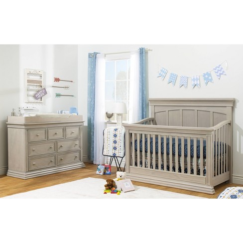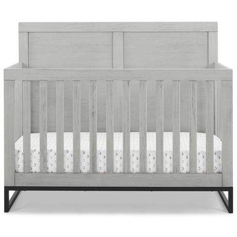 Other rustic design details like a softly distressed finish coordinate well with the crib s modern curved feet.