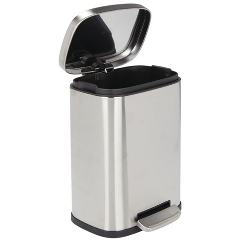 Featuring a slow and silent close this hands free design is easy to operate with a sturdy foot pedal and includes a lid lock that prevents animals and children from getting into the trash.